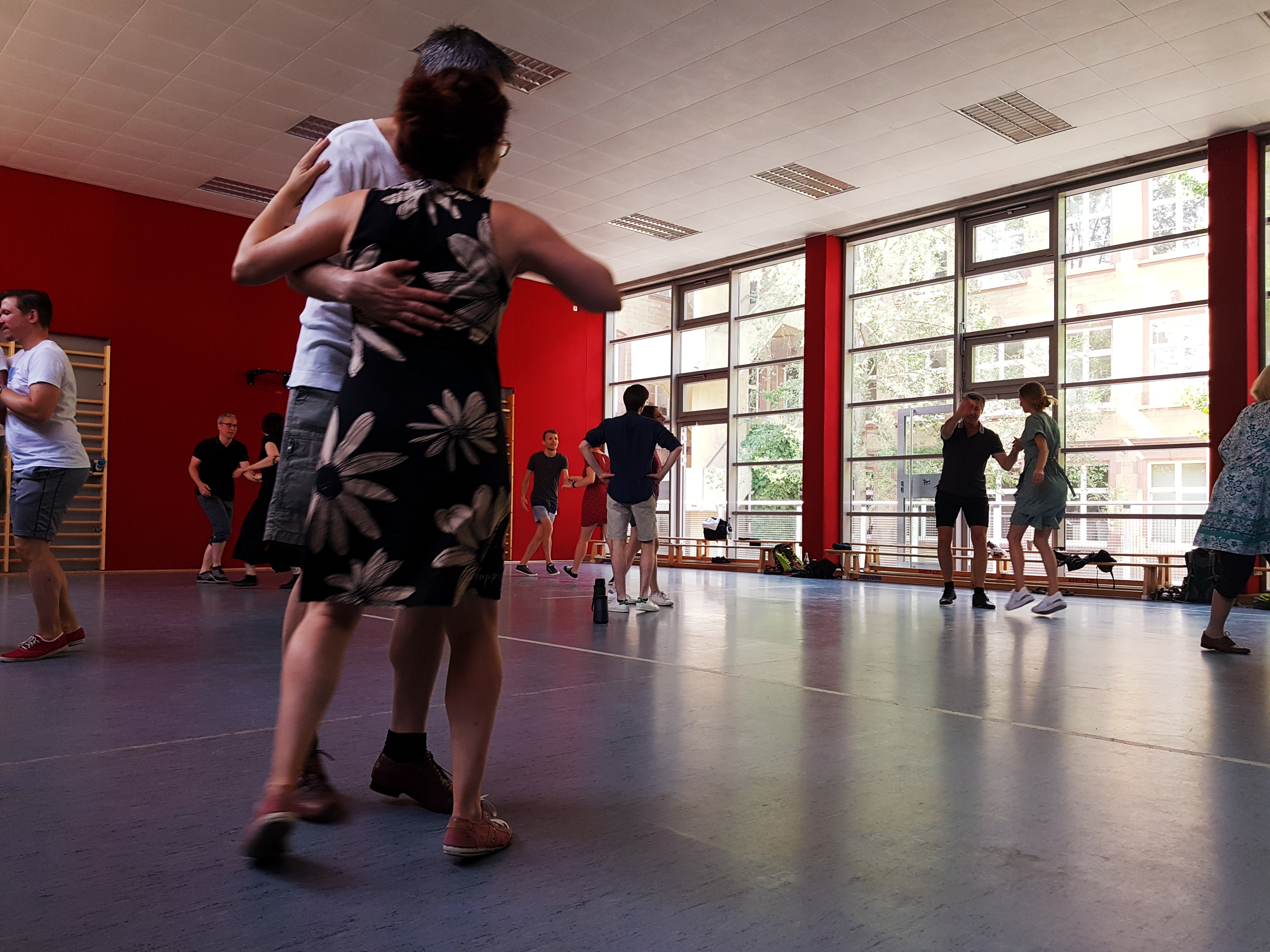 Auch wenn wir bei der Hitze mächtig Respekt vor dem Workshopwochende hatten, war es genau die richtige Entscheidung die beiden endlich mal nach Mainz zu holen. An einem Wochenende war einfach alles dabei, Musicality, Moves & Technik zog sich durch alle 3 Level. Wie gestalte ich eine Phrase, wie verlängere ich Moves, was ist eine schöne Variation des Moves - und wo gehört der Arm jetzt noch mal hin? Jedes Level war voll von wirklich hilfreichen Hinweisen, Vorschlägen und individuellem Feeback. Ein absolutes Highlight war dann am Sonntag "fast Lindy" für Level 3 - trotz der Hitze waren alle mit Begeisterung dabei und haben swingout nach swingout getanzt. Dementsprechend sieht Level 3 auf dem Foto auch nicht mehr so wahnsinnig frisch aus... :)