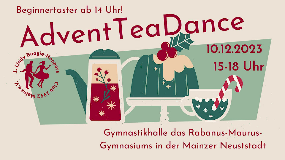 Am 10.12.2023 von 15-18 Uhr veranstalten wir wieder einen TeaDance bei uns in der Halle (Ortsbeschreibung unten), im Format eines offnen, freien Trainings, bei dem auch Gäste herzlich eingeladen sind. Diesmal in der Weihnachtsedition! Wir bringen Musik mit, ihr die Tanzbeine und dann lassen wir ganz entspannt das Wochenende und den Sonntag ausklingen. Es wird einen Beginnertaster (Achtung, der Taster beginnt bereits um 14 Uhr, damit wir um 15 Uhr schon Tanzen können!) geben.