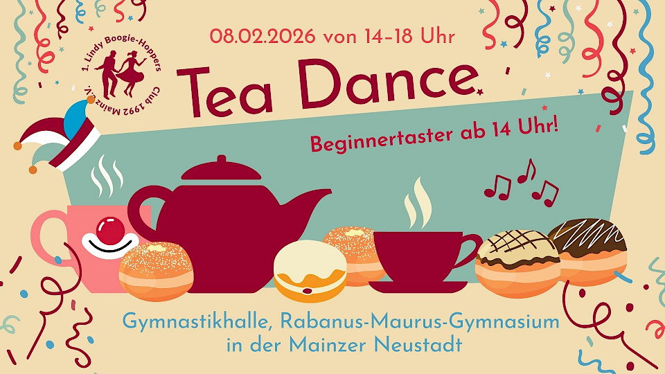 Der TeaDance findet in der Gymnastikhalle des Rabanus-Maurus Gymnasiums, Am 117er Ehrenhof, in der Mainzer-Neustadt statt. Der Eingang (graue Eisentür – FEST DRÜCKEN!) befindet sich in der Adam-Karrillion-Straße – schräg gegenüber vom REWE. Im Innenhof geht ihr bei der nächsten Möglichkeit links und dann durch die Glastür über die Treppe hoch in den ersten Stock. Dort immer rechts und einfach der Musik nach.