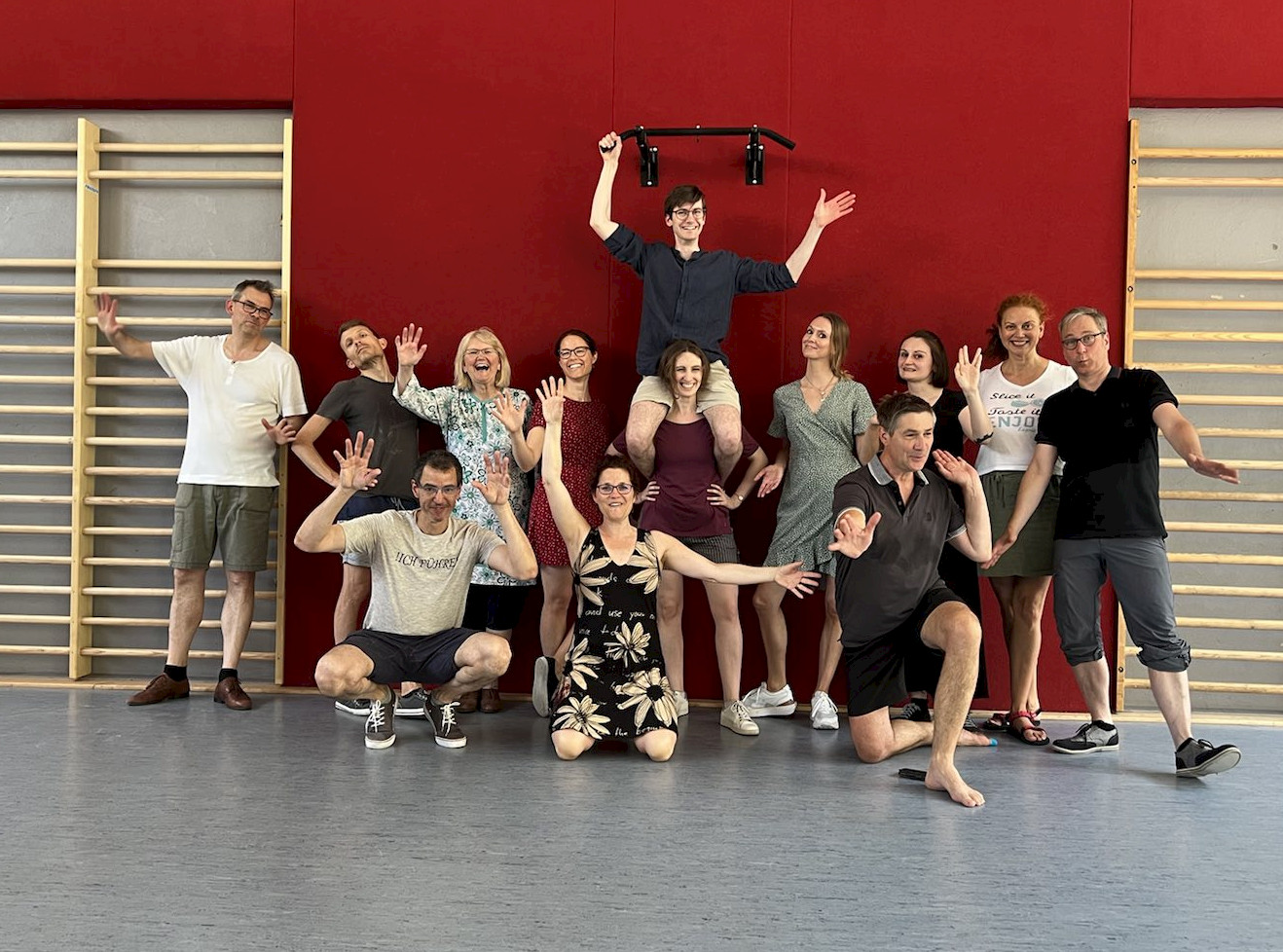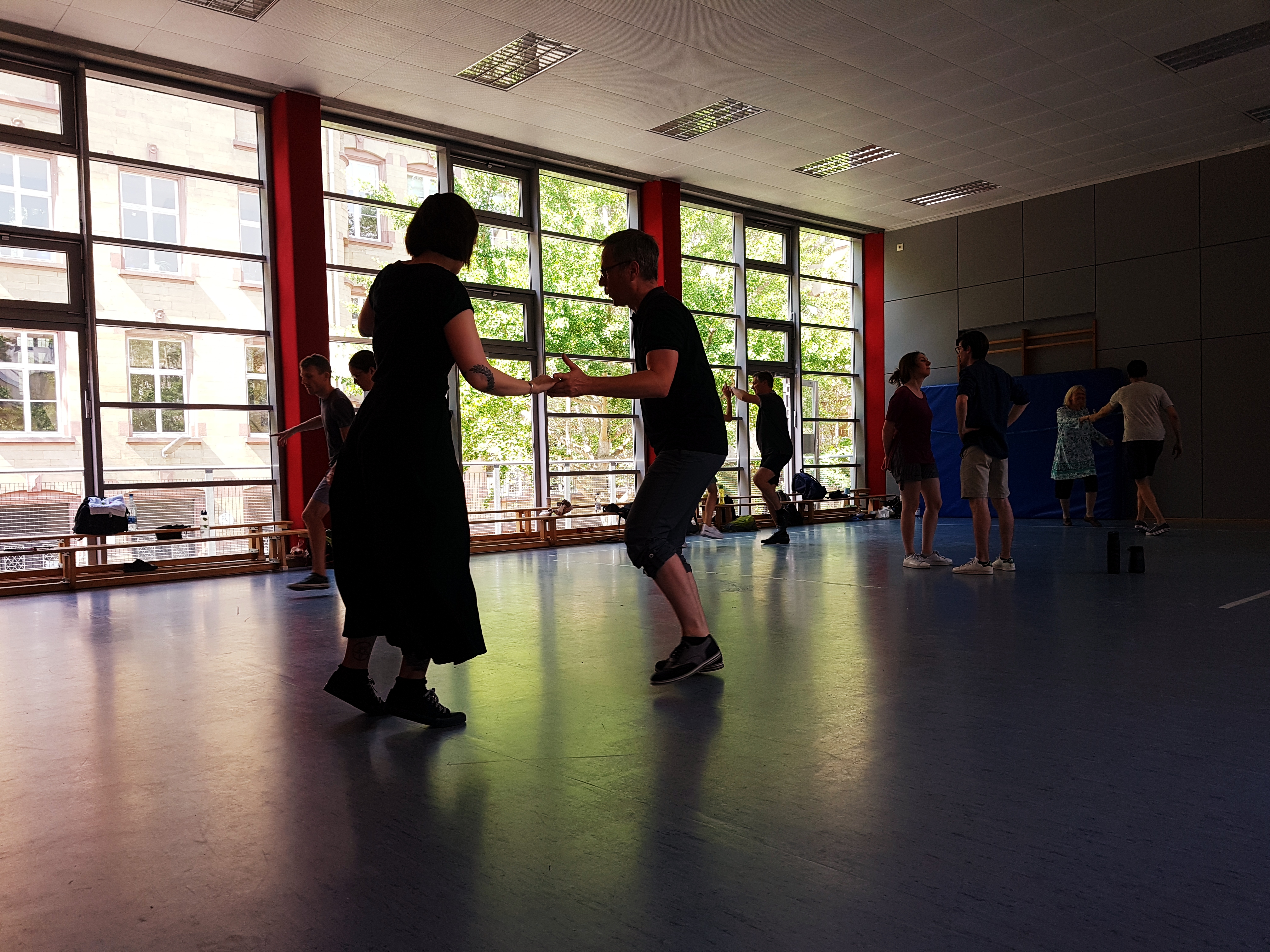 Auch wenn wir bei der Hitze mächtig Respekt vor dem Workshopwochende hatten, war es genau die richtige Entscheidung die beiden endlich mal nach Mainz zu holen. An einem Wochenende war einfach alles dabei, Musicality, Moves & Technik zog sich durch alle 3 Level. Wie gestalte ich eine Phrase, wie verlängere ich Moves, was ist eine schöne Variation des Moves - und wo gehört der Arm jetzt noch mal hin? Jedes Level war voll von wirklich hilfreichen Hinweisen, Vorschlägen und individuellem Feeback. Ein absolutes Highlight war dann am Sonntag "fast Lindy" für Level 3 - trotz der Hitze waren alle mit Begeisterung dabei und haben swingout nach swingout getanzt. Dementsprechend sieht Level 3 auf dem Foto auch nicht mehr so wahnsinnig frisch aus... :)