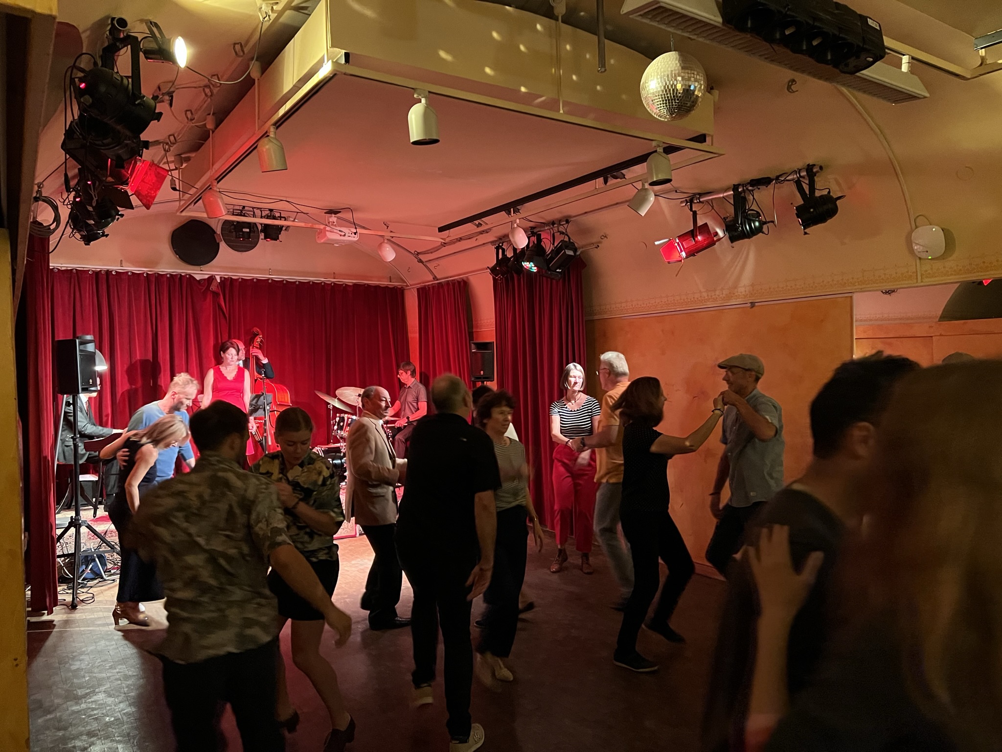 Am Samstagabend hat dann das Reduit zum ersten Mal seine Tore für die Swingtanz Community geöffnet und wir würden sagen, es war Liebe auf den ersten Blick! In den verschiedenen Räumen war reichlich Platz für entspannte Unterhaltungen, kühle Drinks und rasante Tänze. Für die perfekten Tunes sorgten Foxy an the Jazz Hounds, die uns mit ihren Interpretationen von Swing Klassikern und zeitgenössischem Swing voll überzeugten. In den Pausen heizte Jonathan mit seinem DJ Set ordentlich ein. Wer an dem Abend eher für ruhigere Töne offen war, konnte in der Blues Bar fündig werden.